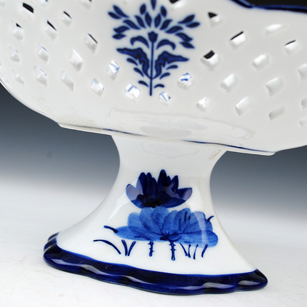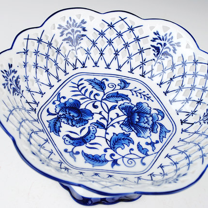 Blue and white hollow fruit plate candy basket Ceramics